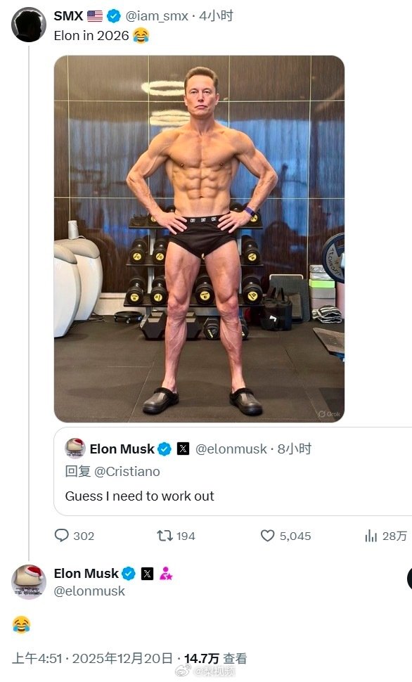快科技12月20日消息,卷近日,身材斯克C罗于个人社交媒体晒出身材照,照走欧义他那如魔鬼筋肉般的红全回复完美体态再度在网络上引发热议,就连世界首富马斯克也留意到并发表了评论。网马