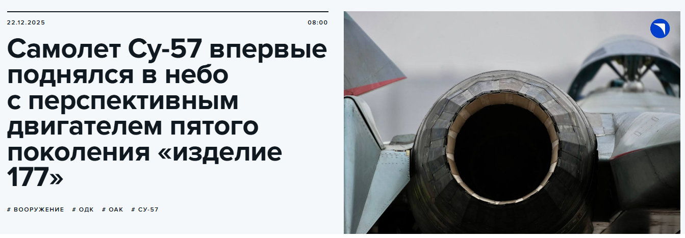 据介绍,“177 型”发动机由联合发动机制造集团研发,面向第五代航空作战系统应用。该型发动机推力达 16,000 公斤,同时降低了所有工作模式下的燃油消耗,并具备更高的使用寿命指标。