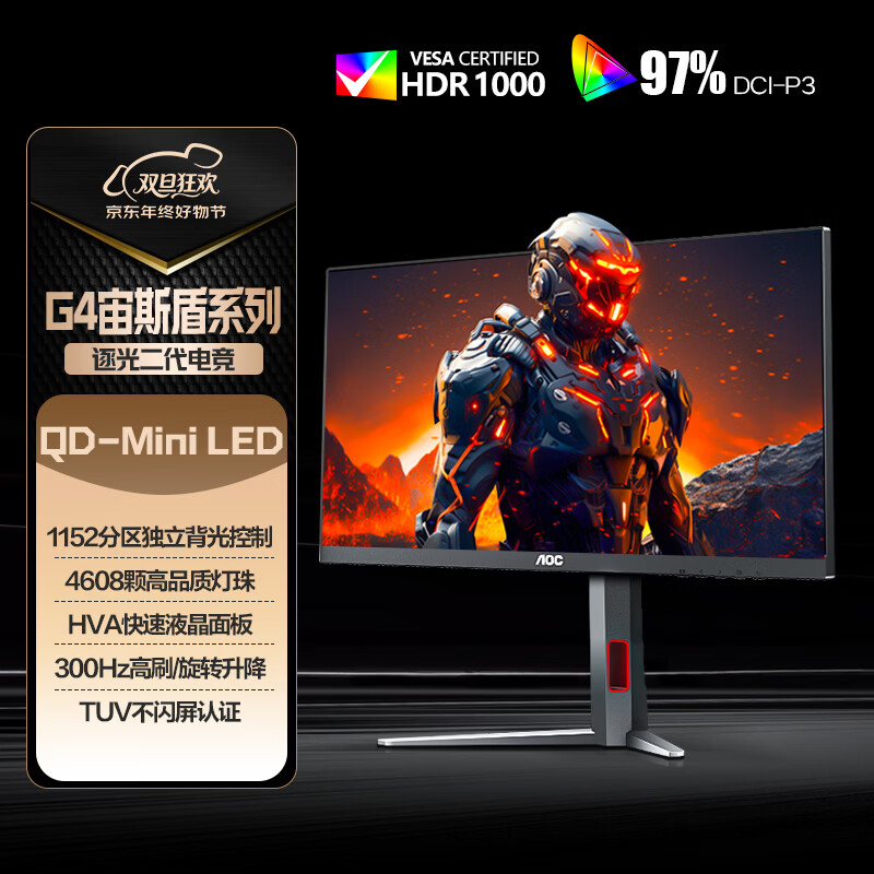 AOC“Q27G4SMN”27 欧交易所app官网下载安全英寸显示器首销:2K 300Hz Mini LED,1919 元