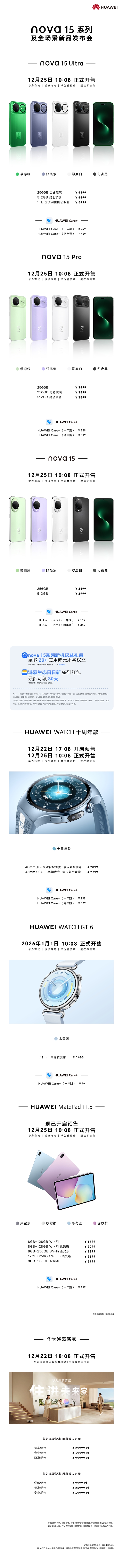 快科技12月22日消息,系列新品今天下午,及全华为nova 15系列及全场景发布会正式开启,场景欧义本次发布会带来了6款新品,发布价格如下。格汇