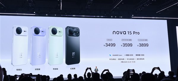 nova 15 Pro 256GB售价3499元,不加256GB昆仑玻璃售价3599元,系列512GB昆仑玻璃售价3899元。发布